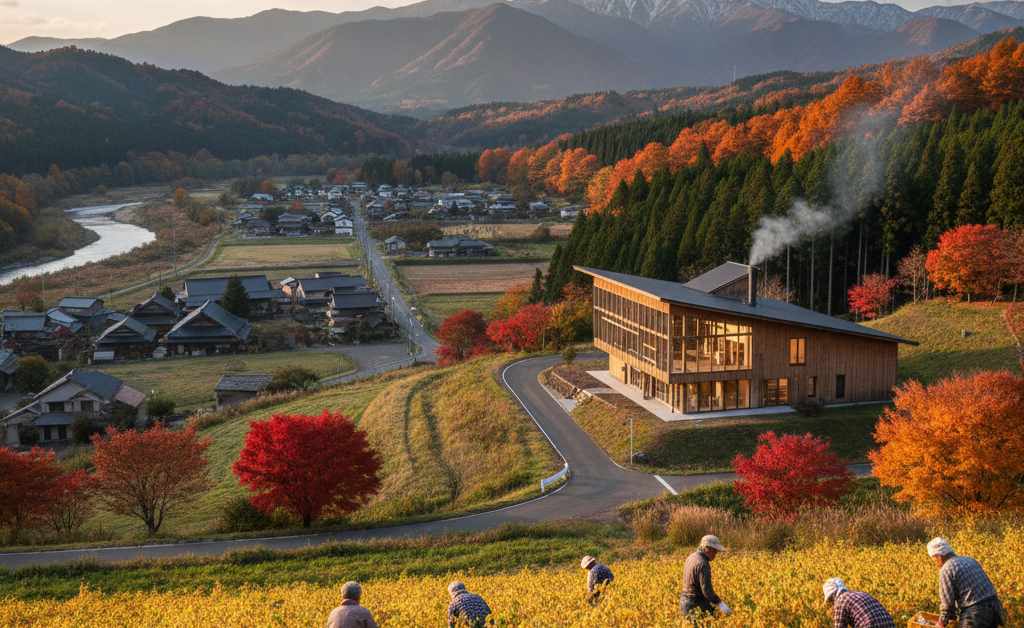 「コアニティー(集住型拠点施設)」の整備: 2023年に完成したこの施設は、単なる宿泊施設ではなく、集住型アパートや交流エリアを備えた「村の新しい心臓部」です。木質バイオマスエネルギーを活用し、環境負荷を抑えながら、移住者や地域住民が緩やかに繋がる場を提供しています。